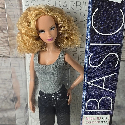 Коллекция Barbie Basics 002 включает кукол в джинсовой одежде. У модели №3 вьющиеся светлые волосы и молд лица Штеффи. На ней светло-серая майка, темно-синие джинсы и черные туфли на каблуках. Эта кукла имеет соблазнительную фигуру Model Muse с четко очерченными ключицами и длинными стройными ногами.