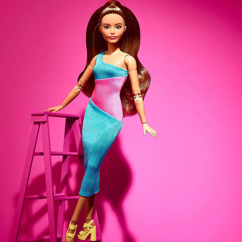 Barbie Looks 15 with Brown Hair Dressed in Pink and Blue Dress Color Block ждет Вас!